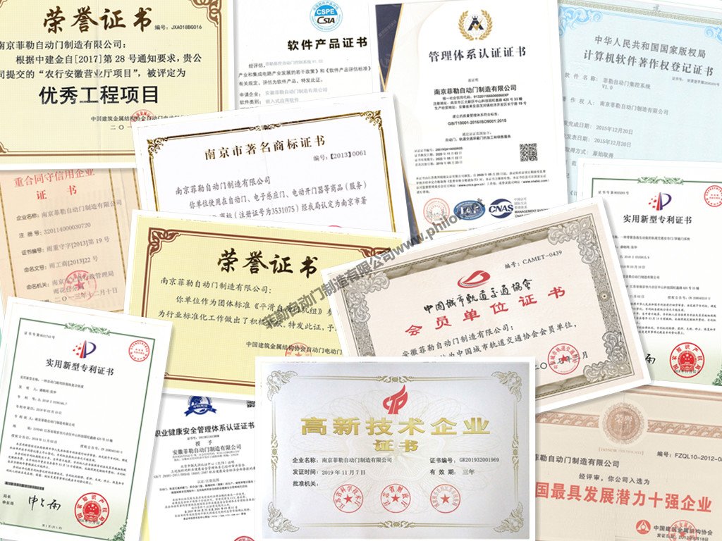 二十多年來菲勒立足自動門市場,感恩于心,誠信于行。專注產(chǎn)品研發(fā)與品質(zhì)提升,現(xiàn)已獲得專利二十余項(xiàng),先后被評為“南京市著名品牌”、“高新技術(shù)企業(yè)”、“重合同守信用單位”等,并已獲得歐盟CE認(rèn)證、ISO9001:2015質(zhì)量管理體系等相關(guān)認(rèn)證。